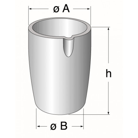 “Dimaika” crucible, mix of refractory and graphite. Spout for easy pouring. P.1 - Capacity: Kg/CU = 1,00, kg/Au = 2,16, kg/Ag = 1,18 - Dim. h=90, ø a=90, ø b=55 mm.