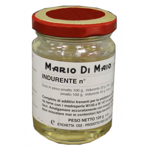 | 1029/1141 | INDURENTE K209 Speciale di durezza superiore con un tempo di utilizzo molto lungo, può essere utilizzato con gli smalti trasparenti neutri e con gli smalti colorati. Per la sua particolare resistenza a trattamenti meccanici e termici è il prodotto ideale da usare quando si leviga, si lucida o si buratta i pezzi smaltati. | H: 80 mm L: 55 mm W: 55 mm W: 0.120000 kg | 21,18 € |